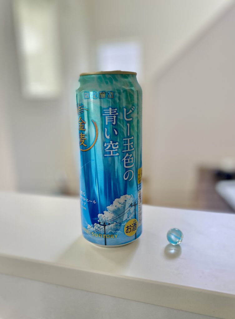 先月、スーパーで、偶然目に入って来た金麦の限定醸造発泡酒「ビー玉色の青い空」。